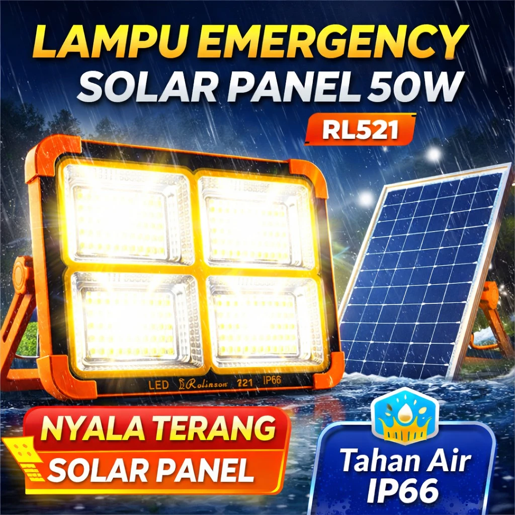 💡 LAMPU DARURAT + POWERBANK – Solar Panel 50W (Tahan Air)